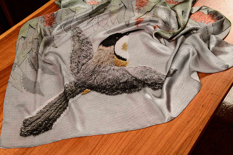 Judy a renowned embroiderer dedicated most of her extraordinary life to capturing the essence of the Australian natural environment in her magical and life like embroidery of native Australian birds and their native habitats – the Australian landscape.